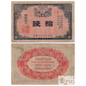 1916년 조선은행 1차 소액 지급어음 10전권입니다.