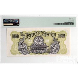 4285(1952년) 신 1000원권(좌이박) 판번호 2 / PMG 65 EPQ