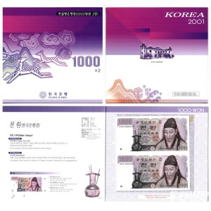 2매 연결형 은행권 최초 발행년도인 2001년도 발행 지폐입니다.
