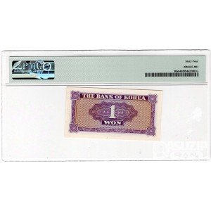1962년 한국은행 1원권(영제) 'V 0926289'/ PMG 66 EPQ