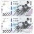 2018년 평창 동계올림픽대회 기념은행권 2000원권 2매 연결권/ AA 9000705 A