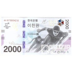 2018년 평창 동계올림픽대회 기념은행권 2000원권/ AA 0---A