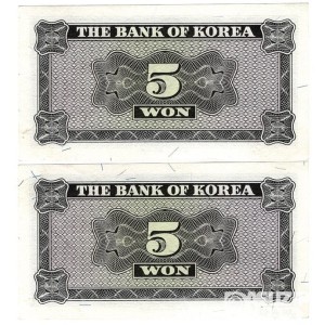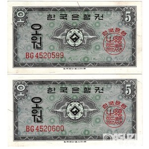 1962년 한국은행 5원권- 2장 일괄입니다.