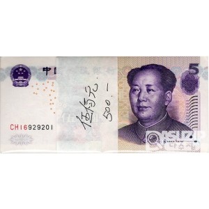 2005년 중국 5위안 100매 다발/ 미사용품