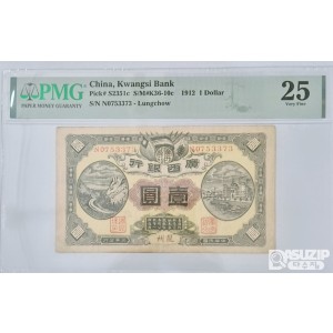 그레이딩 지폐: 1912년 광서은행 1위안 PMG 25등급