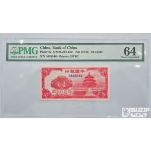 그레이딩 지폐: 1940년 중국은행 1각 PMG 64등급 0665946