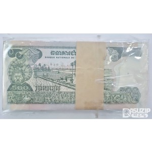 캄보디아: 1972~1975년 크메르 공화국 시대에 발행된 화폐인 500리엘 귀한 다발(준미사용)