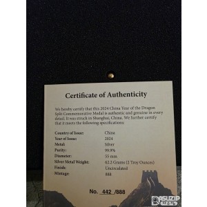 2024년 청룡의 해를 기념하여 중국 조폐국에서 발행한 '2024년 용의 해 스플릿(Split) 기념 2온스 은메달 세트