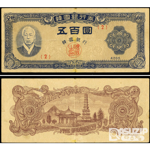 1952년 500원권(남색지) 2번