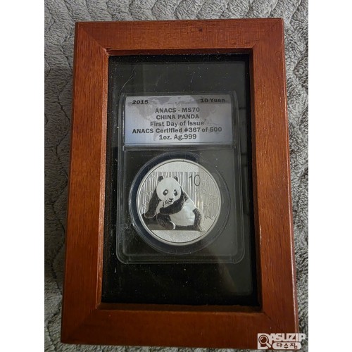 귀한 2015년 중국 팬더 10위안 은화 'First Day of Issue' (최초 발행일) 라벨 500개 중 367번째 MS70 등급